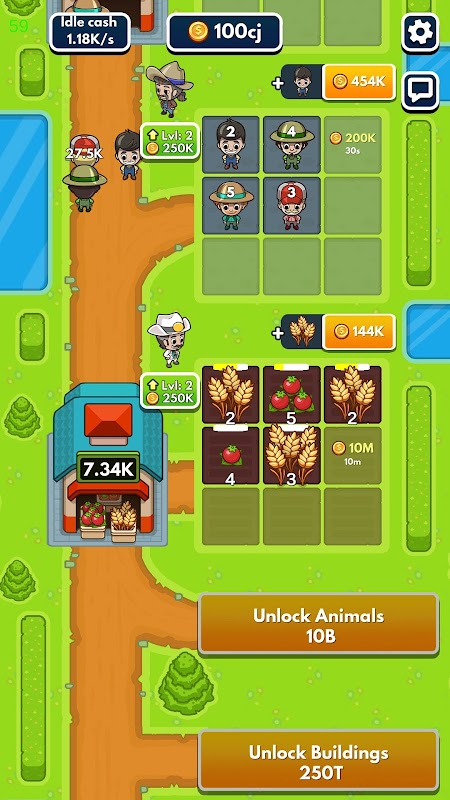 ★从货币投资中获利,提高自身经济状况并致富!★每位经理都拥有一个特别的大亨助推器并可升级:提高工人的生产率!★建立您的闲置模拟亿万富翁帝国!★在这款金钱和农场管理模拟器中收集玉米、西红柿及其他令人兴奋的资源!★在此款大亨游戏中在线或离线增加金钱!★合并您的农民、运输商和植物!