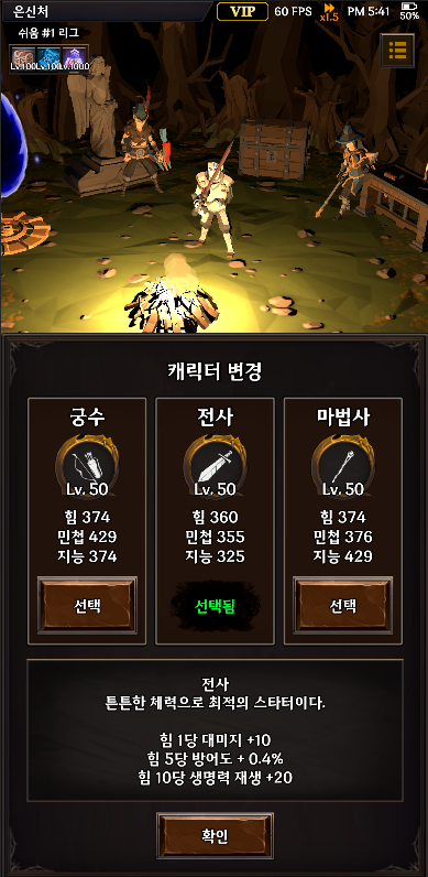 通过自动战斗收集资源,培养三个独特的职业——战士、弓箭手和法师。