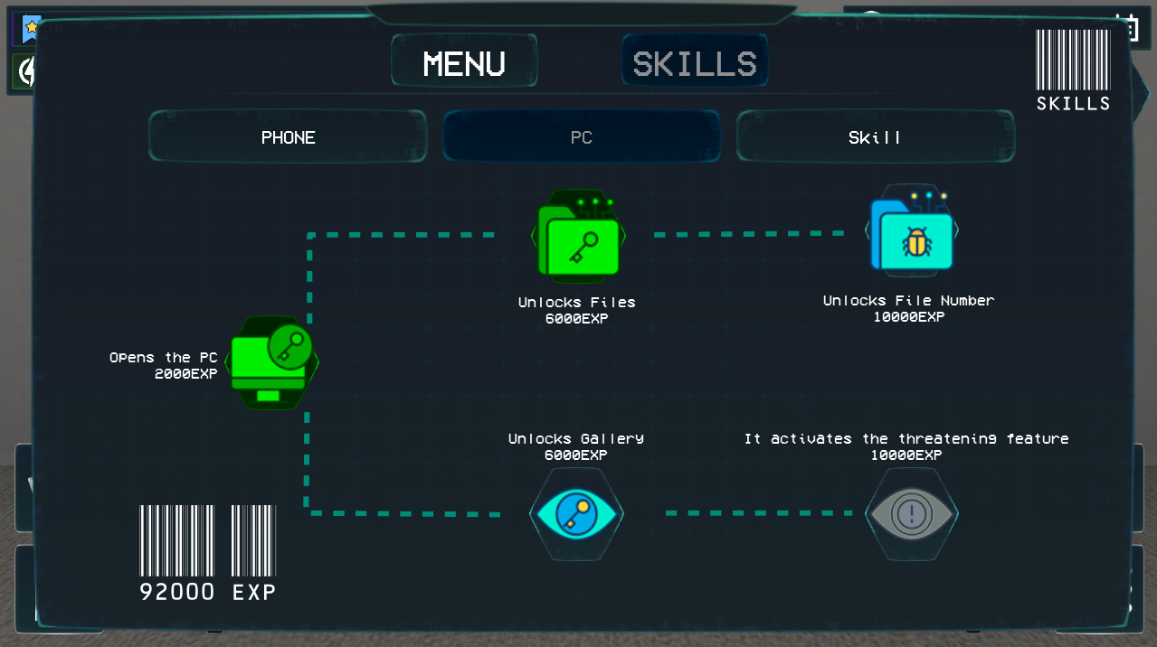 首先,我们将信息从计算机上的互联网浏览器传输到应用程序,该应用程序是主屏幕上的人形图标,按钮位于 GACBOOK 站点的人右侧。然后,可以使用黑客代码利用此信息进行黑客操作。但是有些信息一开始是不可见的。您可以通过进行一些简单的黑客攻击并从菜单的技能部分打开必要的技能来积累技能点来拥有这些功能。