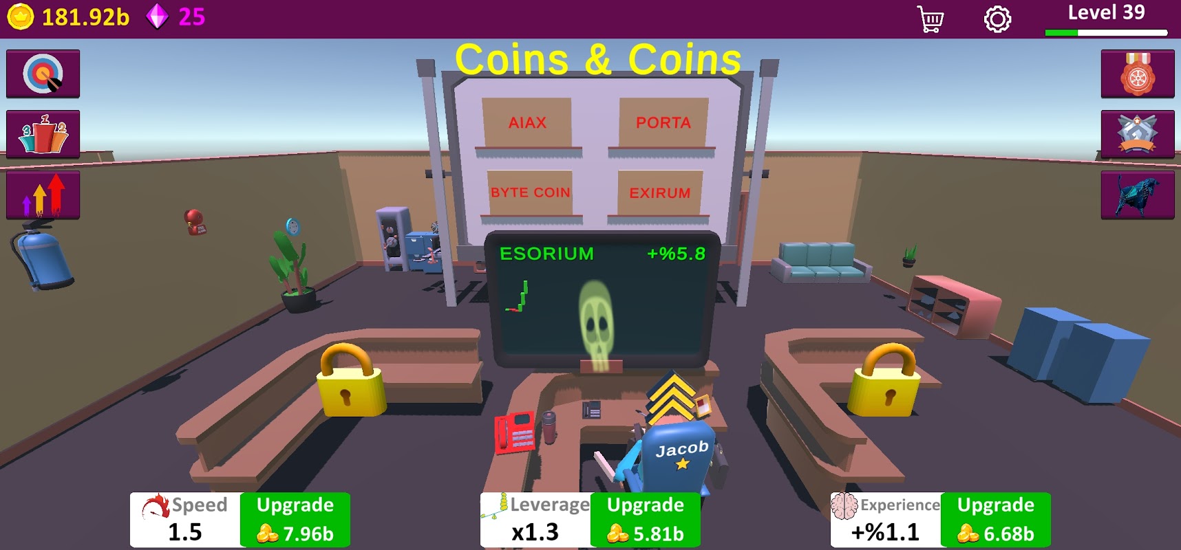 Speed increases trade speed. Leverage is the multiplier for the profits of traders and experience is the additional profit for all traders. See how every boost is used to become a trading tycoon and have fun!