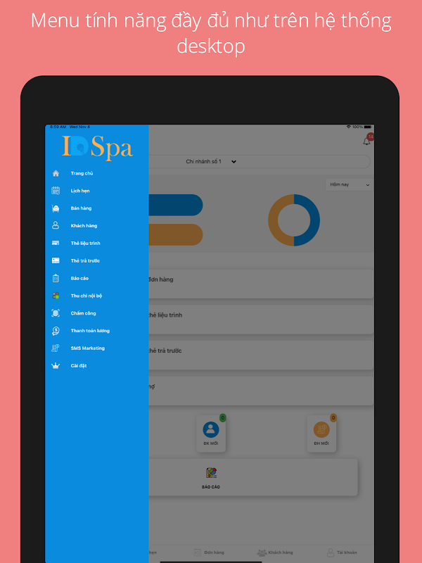 功能齐全的水疗软件:医生,美容院,凭证创建/促销,POS集成,客户管理(CRM),预约时间表,员工佣金管理,计时,工资支付。流程卡管理,预付卡,服务管理,产品库存,消耗品管理,债务,付款,内部收支,财务报告和客户服务:SMS市场营销,电子邮件营销,...