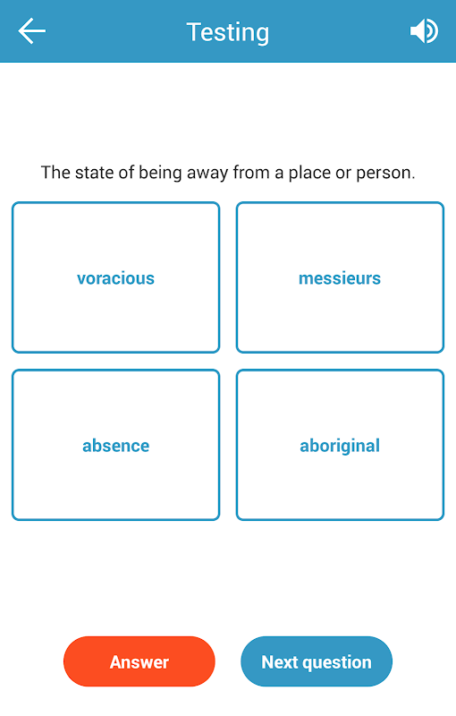 ✔ 随机测试。应用程序会时不时地(随机地)问一些问题来检查您的词汇知识。这些随机语言测试是一种很好的快速学习方法,可以记住您所学的内容。