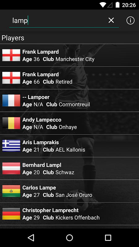 International Football Database is an app designed by football fans, for football fans. Being a football fan is all about opinions and knowledge. We know as football fans that most of us have never sat through a game, without discussing, how old a player is, where he played before and how much he signed for?