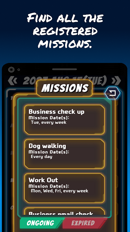 - Register one-time or repetitive (weekly, monthly, or yearly) missions