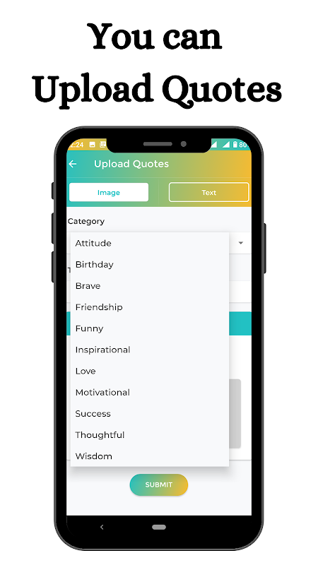 应用程序还包含报价创建功能,该功能允许您编写自己的名言,诗歌,情感,思想或任何形式的作品,并使用创意设计工具将其设计为视觉效果惊人的帖子。优美的背景使您的报价引人注目。