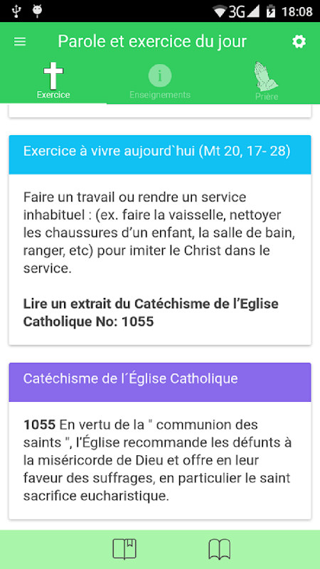 Permet l´affichage des exercices a vivre par jour, l´évangile, ainsi que les enseignements de la fiche de prière du mouvement de l´incarnation produit par Dr Bayemi Henri Fondateur et responsable général du Mouvement de l'Incarnation
