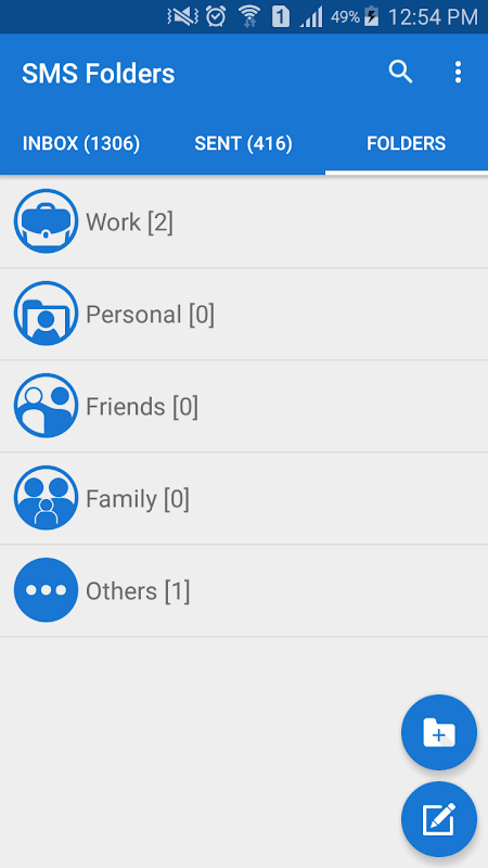 ★ Move the SMS messages to default folders – Work, Personal, Friends, Family, Others etc.