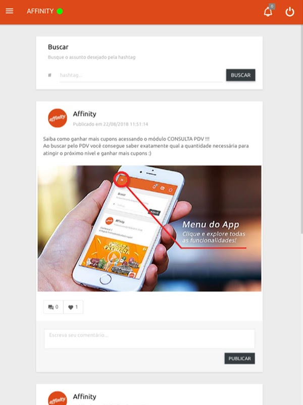 Aplicativo disponibilizado para acesso dos convidados e parceiros Affinity!