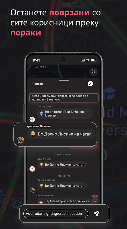 3. Заедничко Известување: Бидете дел од заедница за собраќај. Споделете сопствени