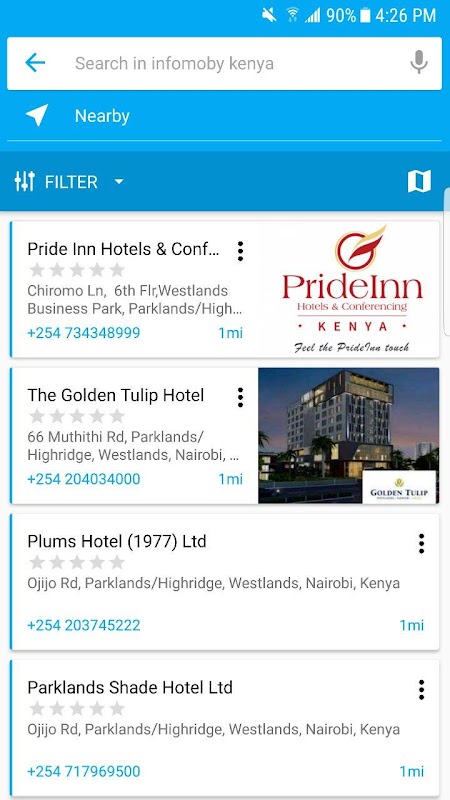 With Infomoby Directory you can find listings in Kenya with contact information and address information. Rate and review listings to give other users a chance to understand what to expect when going to a business.
