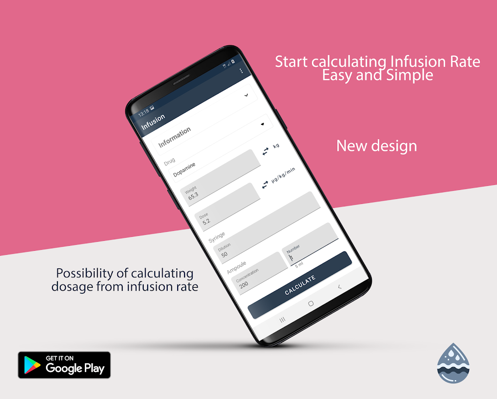 •输液是一个简单的应用程序,用于计算诸如多巴胺,多巴酚丁胺,肾上腺素,去甲肾上腺素等正性肌力药物的输注速率...