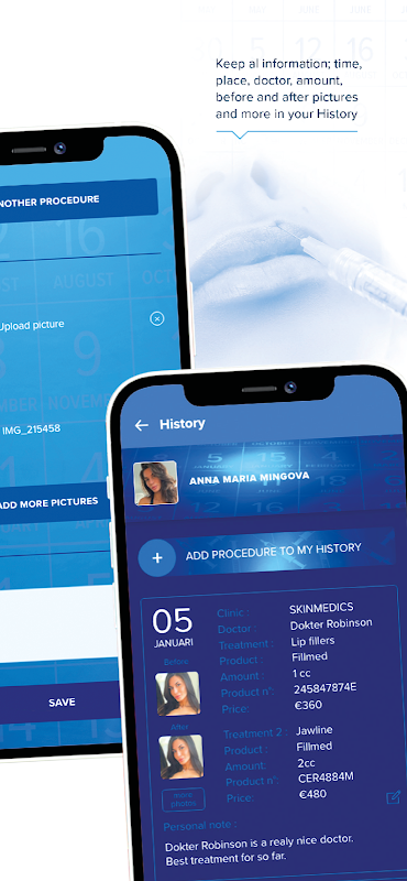 您还记得上次肉毒杆菌或填充剂治疗的细节吗?近两年接受过哪些治疗?借助 Injectify,无论您身在何处,您的个人治疗历史记录(包括治疗前和治疗后的照片)始终触手可及。告别对注射到脸上的成分不必要的怀疑。