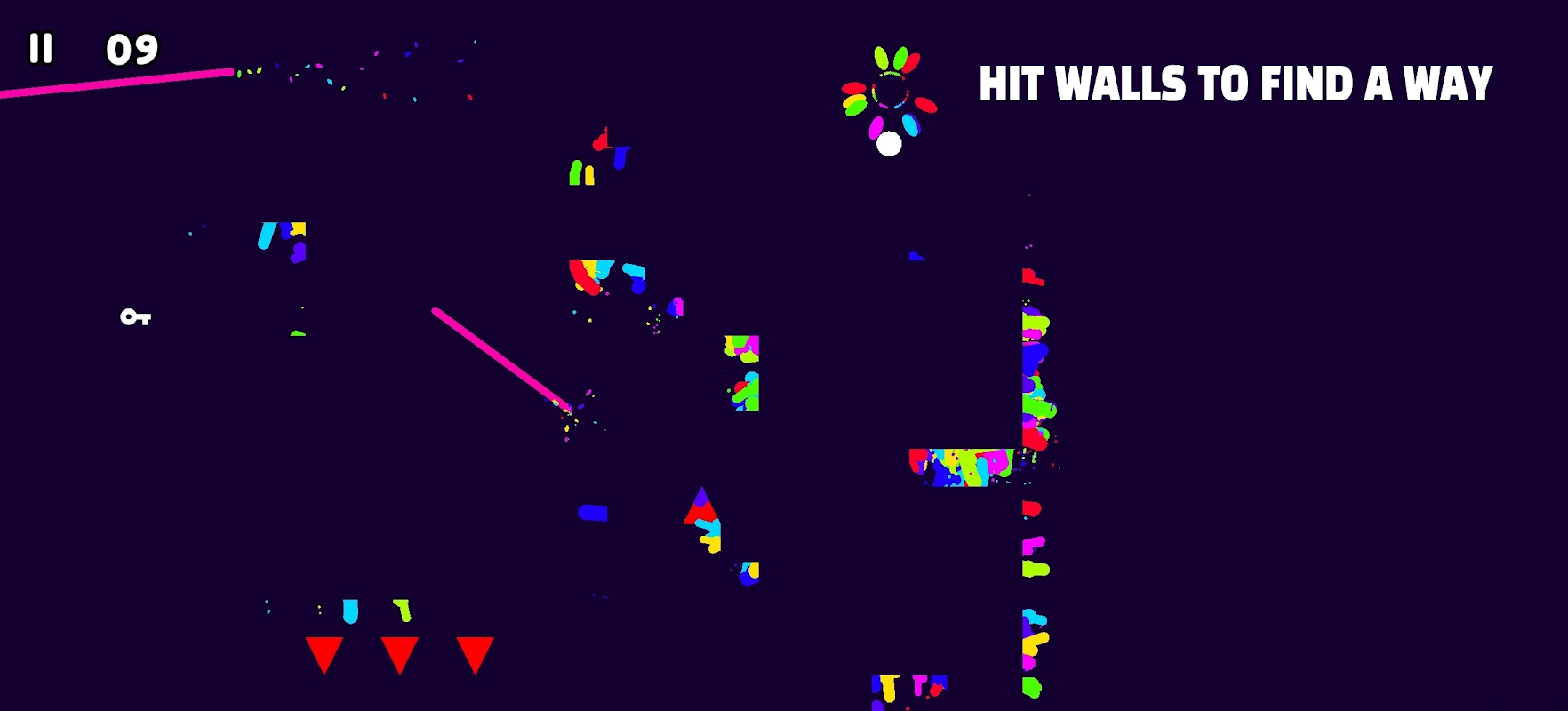 When game started everthing is unvisible. Your mission is to uncover your surroundings using colorful paint and prevent traps! The object of each level is to reach the goal portal by keys, trapdoors and colorful splashes. Ink splash is a fast paced platformer action game.