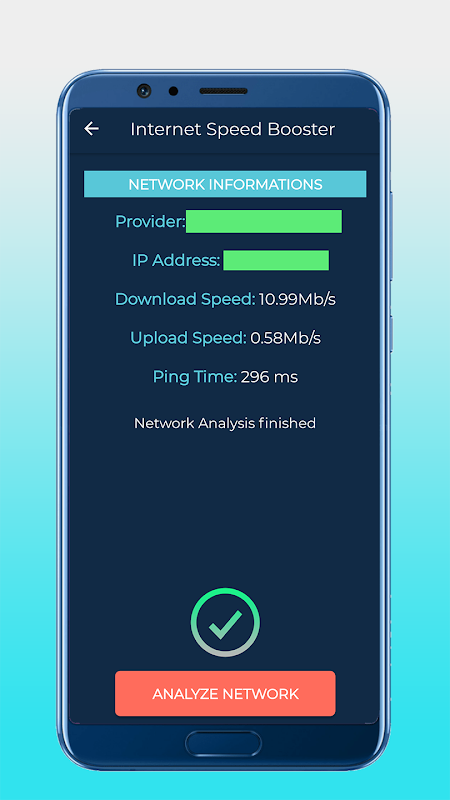 该应用程序还包含一个Android的网络分析工具,它执行一系列后台任务,例如检索您的运营商名称和您的公共网络IP地址,计算您的下载和上传速度以及运行Ping测试来计算Ping平均时间并在完成后在屏幕上显示所有这些内容。