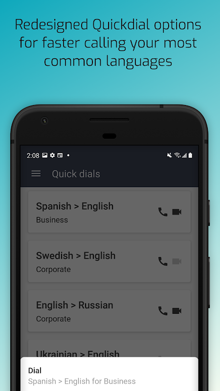 重新设计的 Quickdial 选项可以更快地拨打您最常用的语言。