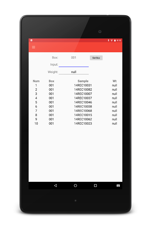 Inventory is a program that lets users collect inventory and weight data simultaneously. The app can perform as a standalone sample collection platform but is also compatible with Elane USB scales. These scales can be plugged directly into Android devices with USB OTG functionality. A USB hub can be used to allow both a scale and barcode scanner to run at the same time.