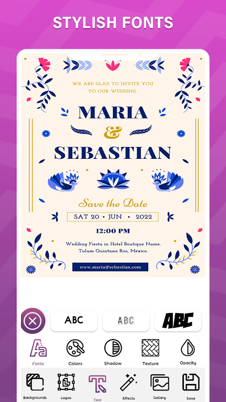 通过生日和婚礼邀请卡制造商应用程序创建邀请、数字邀请并发送明信片以邀请您的特殊人员