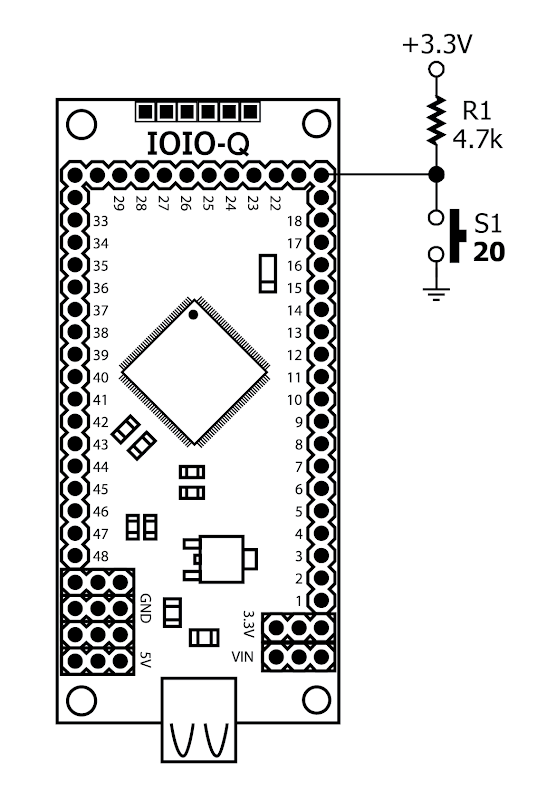 在这个应用中,用户必须输入端口引脚。数字输出板IOIO IOIO-Q离开腿20板IOIO-Q开关LED在黑板上的统计并按下开关会亮起,当开关开启和关闭。