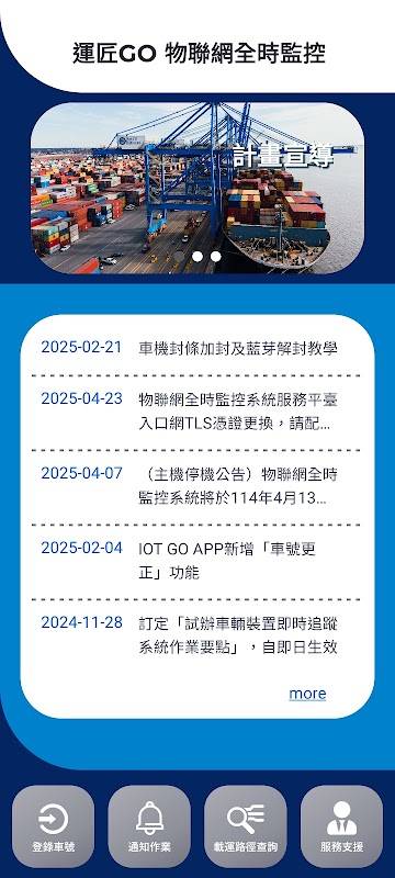 提供使用海关物联网全时监控系统车机封条司机登入,透过本系统查看载运的路径,并即时收到推播通知,取得目前载运状况。