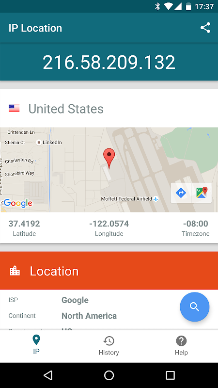 Simple and easy-to-use geolocation app that displays the location of an IP address on a map, together with additional useful data such as: