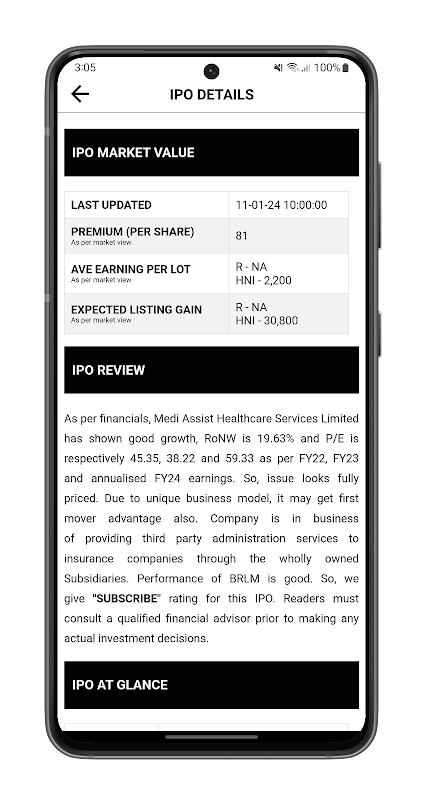 免责声明:本应用程序提供的所有财务信息仅供教育和参考之用。它不构成买卖证券或投资 IPO 的建议。我们并非 SEBI 注册分析师。在根据所提供的信息做出任何投资决定之前,请务必咨询合格的财务顾问。本应用程序中的信息基于截至目前可用的信息以及市场认知,例如 Chittorgarh 网站 (https://www.chittorgarh.com)。