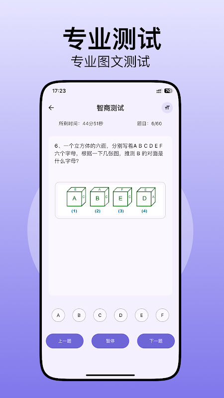 国际标准智商测试,快速测量IQ智商。采用新版标准智商测试,参与趣味智商排行大PK,不仅提供经典脑力测试,还可以为您的智商测试结果提供等级分析,帮助您提高智商。