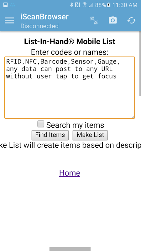 iScanBrowser只需扫描条码,NFC-RFID标签,执行计测量,得到的权重,或什么的,它会直接发布到URL /网页,不需要攻牙需要(专门定制的设置,可能需要和安装费可能需要专门化)