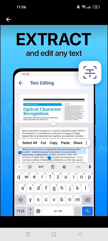 Turn your phone into a portable document scanner with OCR text recognition!