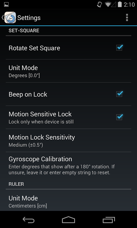 使用陀螺仪传感器功能量角器工具: