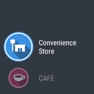 Select type of destination from the menu (convenience store, cafe, family restaurant, station, fast food) , otherwise enter the destination by voice input on your watch.