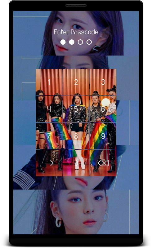 This lock screen is based on Itzy theme. There are many Itzy HD backgrounds in this app. You can unlock your phone using different methods like Slide to unlock, enter passcode, draw pattern, pin, etc.