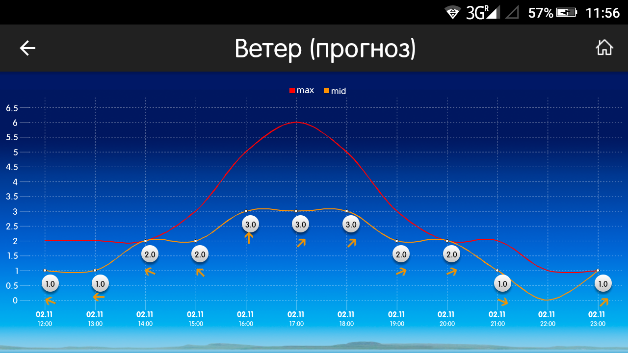 除了实际的数据,应用程序将显示对未来和历史风速和温度数天的天气预报。