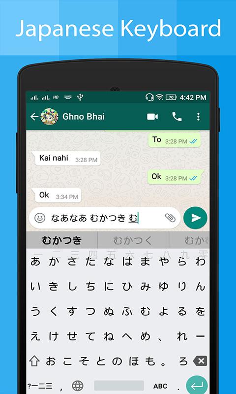 日语键盘是这个应用程序的日语写作的最佳功能。日语键盘应用程序将允许您用日语编写消息、故事、Facebook 帖子、博客、电子邮件。你会发现引人注目且用户友好的日文键盘来写日文。日语键盘有最简单的键盘来写日语字母、字母和单词。
