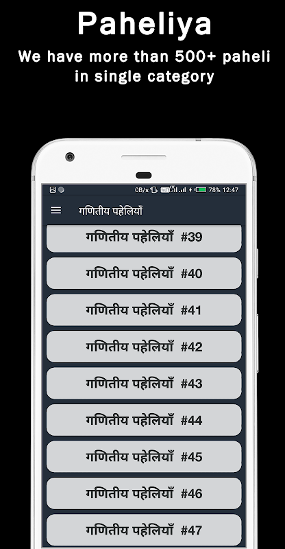 结果与公牛;在此应用程序中,Jasoosi paheliya(),Maths Paheli(),Rochak Paheli(),Majedar Paheli(),Other Paheli()和Video Paheli()