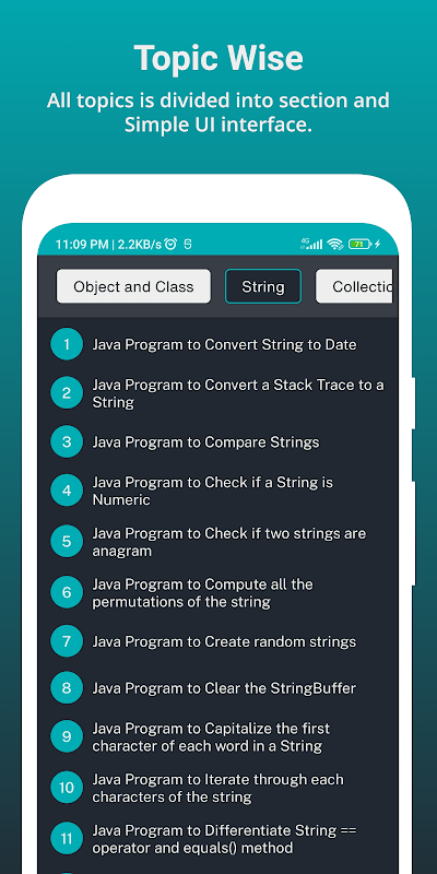 通过练习学习Java编程语言是在短时间内学习编程的简单方法。在此应用程序中,每个主题都包含自己的示例,并具有独特的输出。