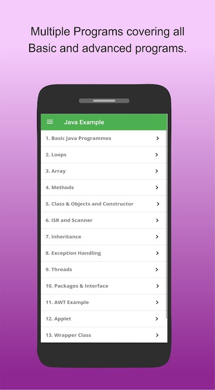 这个应用程序可以帮助您在旅途中参考大量 Java 程序,并帮助您提高对与编程相关的各种问题的逻辑思维。它是一个为各种 Java 程序提供源代码和输出的应用程序
