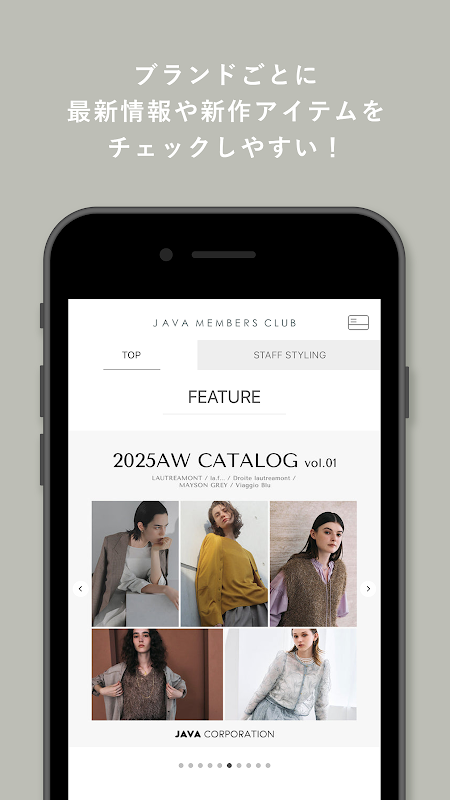 通过JAVA MEMBERS CLUB官方应用程序,您可以查看JAVA集团直营的女装时尚品牌的最新商品和搭配,以及商店品牌新闻,并可以直接在官方在线购物网站JLounge上通过应用程序进行购物。玩得开心的同时,还可以获得该应用程序独有的精彩促销信息和限量优惠券,这是一款充满JAVA品牌魅力的免费官方应用程序。
