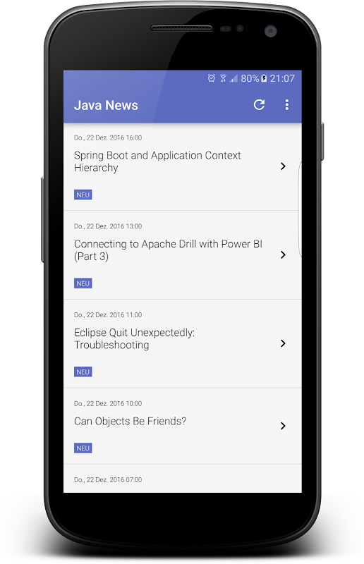 Eine Menge Artikel zu Java Frameworks, J2EE, Android Entwicklung, Java Patterns, Software Entwicklung uvm.