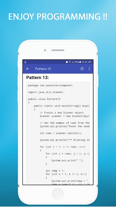 APKPure 使用签名验证功能,确保为您提供无病毒的 JAVA Pattern Programs APK 下载。