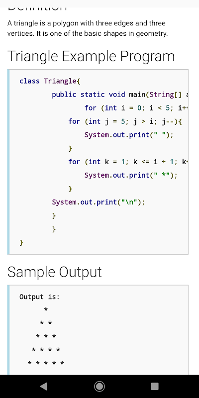 This Java Programs Example App will help you to learn JAVA programming language by simple examples with Output.“Learn Java Program” app has a really simple and intuitive user interface. It is the best app to let you learn the Java programming language for free