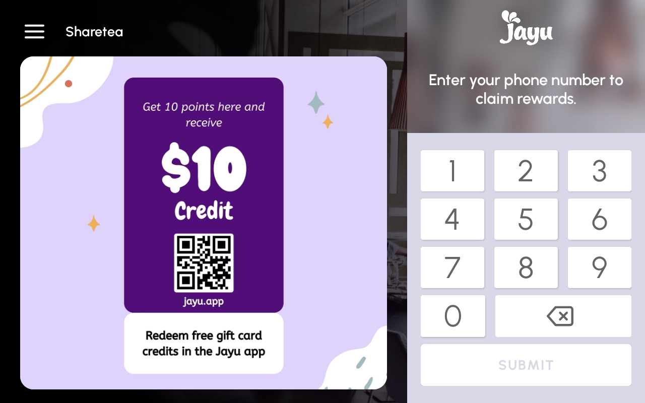 使用Jayu平板电脑应用可以轻松为客户提供奖励积分。在销售点附近进行设置,以鼓励您的客户加入您的忠诚度计划。