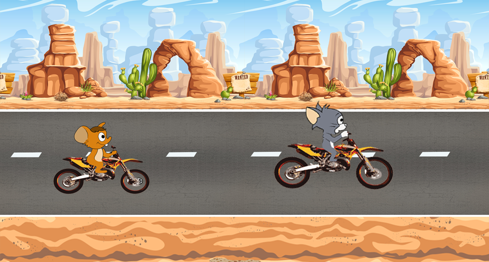 The best, simple and fun racing game for kids! This free game is designed for kids whos love Tom And mouse jerry Choose your means of transport and cross the finish line. Take control of your moto at your fingertips and watch the moto turn, jump and roll. The other racing games for your child are too difficult or annoying for complicated levels and difficult management. This game Tom and Mouse and jerry is what you are looking for.