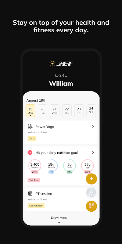 借助 JET Boston 应用程序,您可以在私人教练的帮助下开始跟踪您的锻炼和膳食、测量结果并实现您的健身目标。
