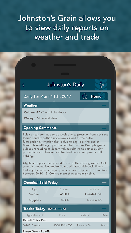 With over 30 years in the business and a massive client-base of farmers and grain buyers, Johnston’s offers the best mixture of inventory and markets. Our staff is available to help support negotiation, delivery and settlement of all transactions done through our platform.