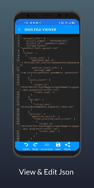 JSON File Reader & Editor App 非常易于使用,您必须从设备存储中选择一个文件,JSON 文件打开器将解析该文件并获取 JSON 字符串数据,然后将 JSON 字符串加载到 JSON 编辑器中.在 JSON 阅读器中,您可以轻松找到任何单词并将所有结果替换为任何其他单词。通过 JSON 文件查看器,您还可以从 URL 获取 JSON 代码,并在编辑器中进行更改并将其轻松保存在设备存储中。