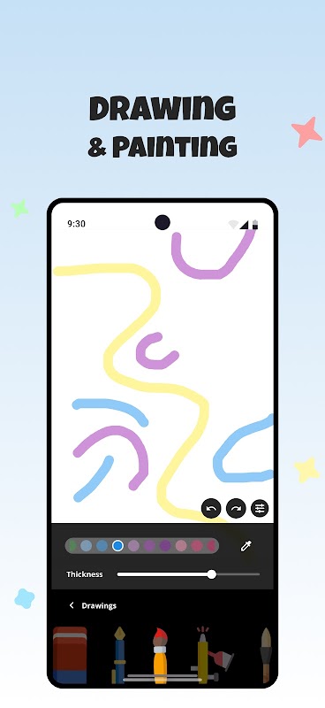 使用不同的画笔(粉笔、荧光笔、油彩等)进行绘画。