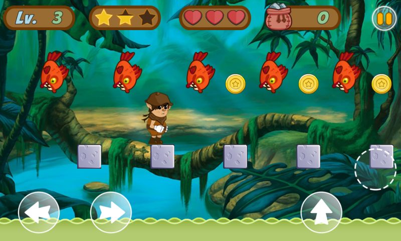 控制小男孩跳跃,奔跑,射击怪物来通过危险的丛林世界。战胜各种各样的怪物,然后找到最后的宝藏!