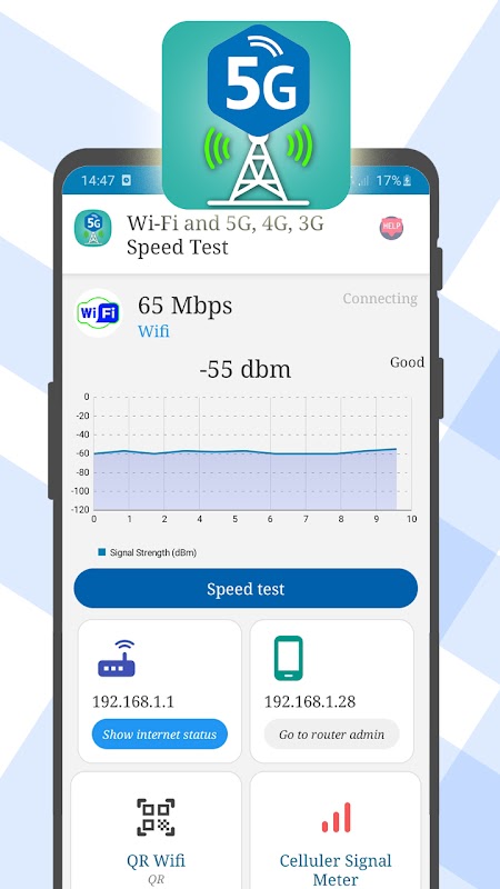 - WiFi speedometer test for WiFi, 5G, 4G, 3G i nreal-time