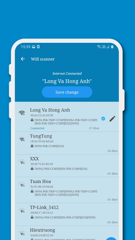 - Wifi 扫描仪:强大的工具,可帮助你扫描所有 WiFi 波并分析信号强度、IP 地址、设备名称、Mac 地址等详细信息...