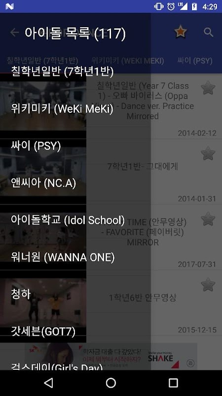 아이돌 목록은 "어플 업데이트와 상관없이" 수시로 추가 됩니다.